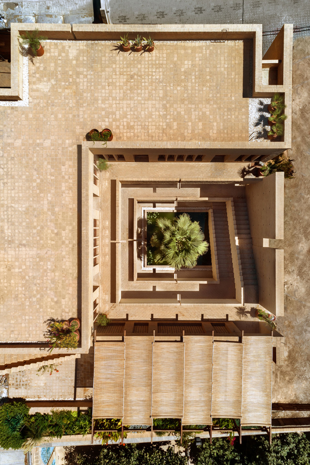 به جای اختصاص دادن تمام فضای پشتبام، یک فضای نیمهباز (تراس پشتبام) بهعنوان یکی از فضاهای ضروری یک خانه مسکونی طراحی شد. این فضا قابلیت ادغام با فضای داخلی را دارد و میتوان از آن بهعنوان محل غذاخوری و باربیکیو استفاده کرد.