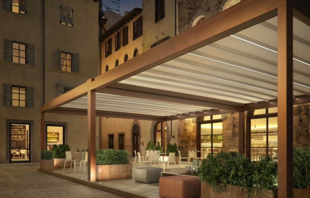 الف) سقف متحرک پارچهای (Pergola Systems)